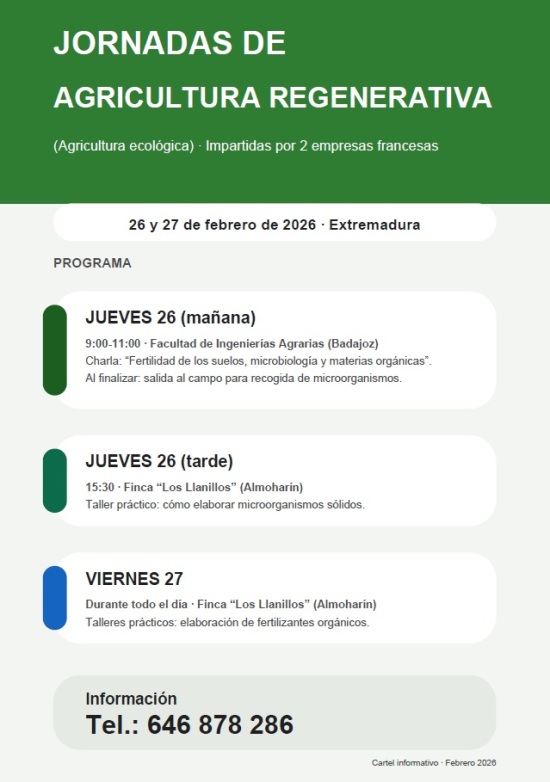 Unas jornadas enseñarán las claves de la agricultura regenerativa en Badajoz los días 26 y 27 de febrero