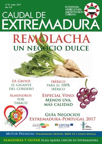 Este nuevo número especial de otoño de CAUDAL DE EXTREMADURA, como cada año, tiene como protagonista una GUÍA DE NEGOCIOS EXTREMADURA-PORTUGAL, en la que se diseccionan las relaciones económicas entre nuestra región y el país vecino, en la que se incluyen, además, entrevistas con Rosa Balas, directora general de Acción Exterior de la Junta de Extremadura o Dina Lopes, responsable de proyectos estratégicos de Consulai, una de las mayores consultoras especializada en el sector agroalimentario, agrario y forestal de Portugal; a lo que hay que añadir sendos artículos de la presidenta de la Diputación de Cáceres, Rosario Cordero, y del presidente de la Diputación de Badajoz, Miguel Ángel Gallardo.