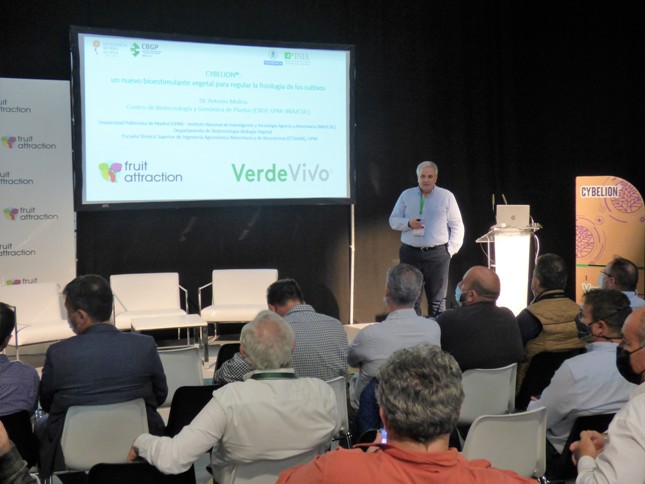 Combina una mezcla de betaglucanos percibidos por la planta y un metabolito que también regula la fisiología vegetal. Este doble modo de acción hace que tenga un valor añadido respecto a lo que ya hay en el mercado”, ha destacado Antonio Molina, director del Centro de Biotecnología y Genómica de Plantas CBGP (UPM-INIA) durante el transcurso de la Feria Fruit Attraction, que ha acogido una presentación del producto en el espacio Biotech Forum.