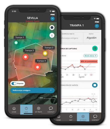La innovadora plataforma ofrece un conjunto completo de funciones, incluidas alertas personalizadas a través de una aplicación móvil, que indica cuándo es necesario realizar aplicaciones en el campo. La aplicación permite la comunicación bidireccional con los técnicos de FMC, proporcionando datos fiables y gráficos junto con un análisis de alta calidad, incluyendo detalles a nivel de trampa que permiten entender mejor la presión local de las plagas.