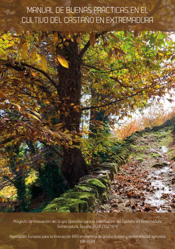 El Manual de Buenas Prácticas en el Cultivo del Castaño en Extremadura pretende ser una guía completa para la revalorización de los castañares en Extremadura. Se estructura en fichas divulgativas con resultados de diferentes trabajos de investigación y recomendaciones para la gestión y manejo de este cultivo: variedades más idóneas, necesidades hídricas y estrategias de riego, manejo sostenible del suelo, modelo de cultivo en un sistema agroforestal, y el control de las principales enfermedades que afectan a esta especie, el chancro y la tinta del castaño, causantes de importantes pérdidas en los árboles y en su producción.