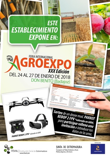 AGROEXPO 2019 está organizada por FEVAL, Institución Ferial de Extremadura. Ha sido patrocinada por Cajalmendralejo y cuenta con la colaboración de la Junta de Extremadura, Diputación de Cáceres, Diputación de Badajoz y Ayuntamiento de Don Benito.