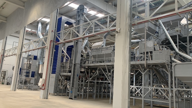 Esta planta ubicada en el municipio de Miajadas (Cáceres) dispone de dos procesos principales de funcionamiento para el tratamiento de la almendra. El primero es en el tiempo de recolección de la almendra en las diferentes fincas que dispone la propiedad, aproximadamente a partir de la segunda quincena de agosto. En este caso, la planta ya realizó sus labores de recepción, limpieza, descapotado, secado y almacenado de la almendra recién recolectada en la pasada temporada, iniciando así su funcionamiento en la campaña de 2023.