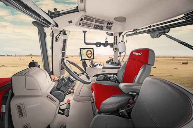 Para combinar confort y control, el nuevo reposabrazos en los modelos Multicontroller (con PowerDrive Full Powershift de 19 velocidades) y CVXDrive (con transmisión continua CVX) incorpora ahora más funciones, muchas de ellas personalizables. Incluye una ruleta de navegación que puede utilizarse preferiblemente como alternativa a deslizar el dedo por la nueva pantalla táctil de 12 pulgadas AFS Pro 1200 para navegar por ella y seleccionar las funciones. El monitor permite configurar las respuestas de la transmisión CVX y de la suspensión del eje delantero.
