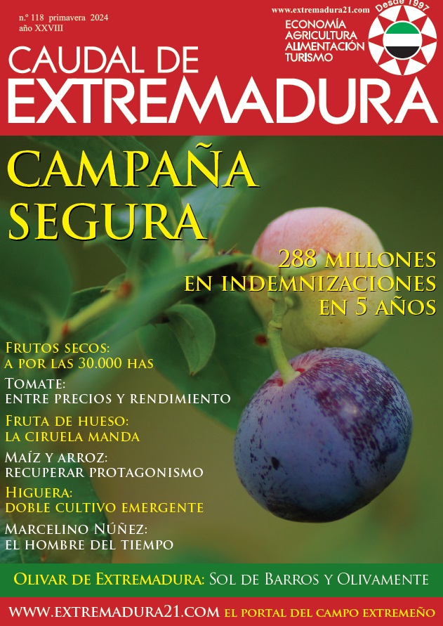 Como es habitual, en diversos reportajes y entrevistas abordamos la actualidad de nuestro campo y sus principales cultivos, ahora en campaña. El tomate para industria ha sembrado esta campaña 22.742 has para más de dos millones de tonelada de producción prevista. Por otra parte, Félix Liviano, de Cooperativas Agro-alimentarias, nos explica cómo la rentabilidad del arroz está muy ajustada por los precios de compra y por la entrada en Europa de arroz de importación muy barato. También destacamos en CAUDAL DE EXTREMADURA cómo la campaña de fruta de hueso prevé 250.000 tn con una importante reducción de la ciruela y la picota. Sin olvidar el hecho de que nuestro agro ha recuperado el pulso de la producción de cereales con 1,2 millones de tn en esta campaña. Mientras, el maíz enfila la campaña con precios en lonja entre 217 y 234 euros/tn, con la vista puesta en Estados Unidos. Por otra parte, el cultivo del ajo cae en superficie un 30% en España, con menos de 400 has en Extremadura. Y para finalizar este panorama sobre los cultivos en nuestra región, comentamos cómo España cuenta ya con más de 78.500 has de pistacho, de ellas 3.800 en Extremadura.