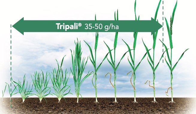 Desde su lanzamiento en 2017, TRIPALI® se ha consolidado como uno de los productos de referencia para el control de malas hierbas de hoja ancha en postemergencia en el cultivo de cereal. Su formulación, basada en tres materias activas, le permite controlar más de 60 especies de malas hierbas, incluidas algunas de las más problemáticas, como lapa, magarza, cardo, lamium y crucíferas.