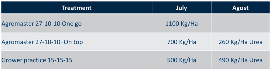 Otra conclusión importante ha sido que el uso de Agromaster como abonado de única aplicación en Maíz de ciclo corto, nos asegura una nutrición suficiente y equilibrada para lograr el techo de producción.