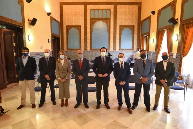 La formalización del acuerdo del convenio de constitución de la Cátedra SIPCAM de Transformación Digital para la Agricultura Sostenible ha tenido lugar en la Sala Mudéjar del Rectorado de la Universidad de Córdoba, y ha contado con la presencia del rector de la UCO, José Carlos Gómez Villamandos; el consejero delegado de SIPCAM Iberia, Pablo Montañés Abad; el director de la Cátedra SIPCAM, Jesús A. Gil Ribes; la directora general de Desarrollo Rural, Innovación y Formación Agroalimentaria del Ministerio de Agricultura, Pesca y Alimentación, Isabel Bombal Díaz -que ha intervenido mediante videoconferencia-; y la directora de la Escuela Técnica Superior de Ingeniería Agronómica y de Montes, Rosa Gallardo Cobos, que ha impartido la conferencia “La necesaria transformación digital para la sostenibilidad de la agricultura”, así como más de 150 personas que han seguido la retransmisión online en directo del evento.